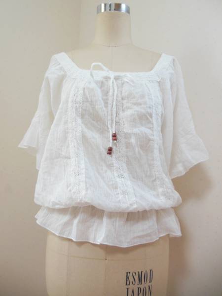 - スクエアカットチュニック/Lサイズ/半袖/コットン/シフォン風