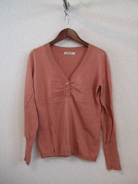 - SPBピンクVネック長袖コットンニット(USED)11514②
