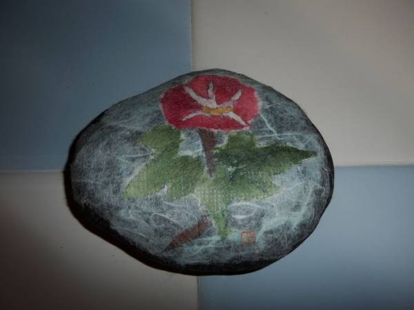 - ■インテリア*津軽の石■肉筆『ちぎり絵*朝顔』感動/美品♪♪