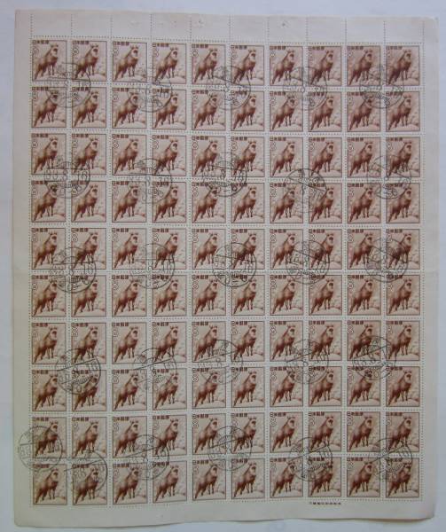 - 【送料無料】動植物国宝図案 8円 カモシカ 100枚シート 湯浅消印