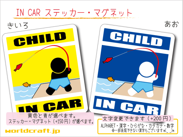 - ■CHILD IN CARステッカーフィッシング!■釣りキッズ 乗ってます 車に ステッカー/マグネット選択可能☆(5