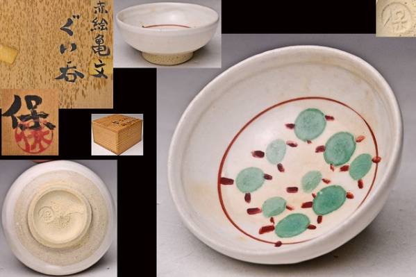 - 清水保孝 ★ 赤絵亀文ぐい呑 ★ 共箱 ★ 酒器 ★ 父 : 人間国宝 清水卯一 ★