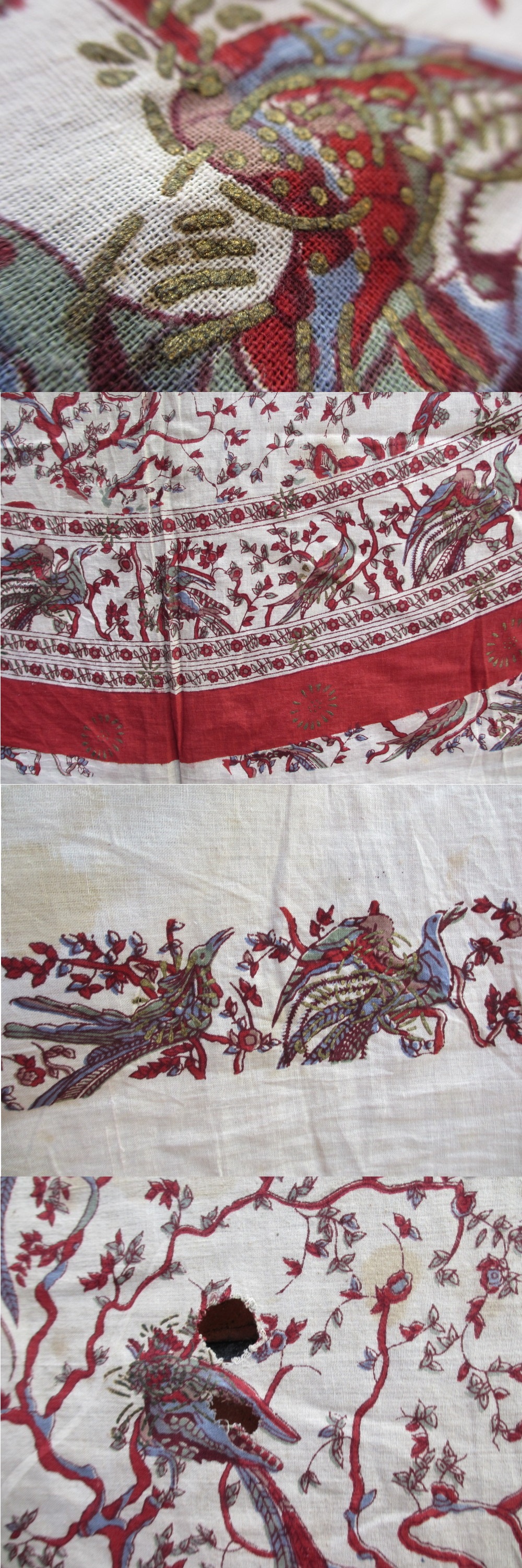 - 南インド とても珍しい金更紗 木と鳥模様 1880年代