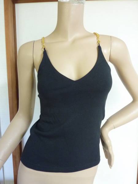 - 匿名配送 送料無料 新品 ゴールドチェーン ストラップ キャミソール ブラック 黒 レディース M セクシー