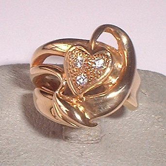- 送料無料 k18ハートにダイヤ3石リングサイズ4号 used 質屋出品