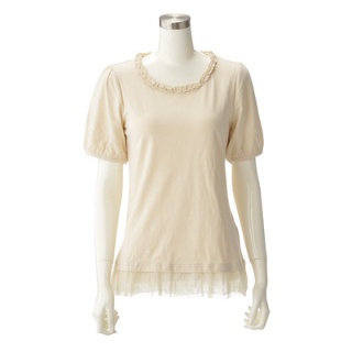 - &LOVE*裾チュール Tシャツ qvc ベージュ LL 送料無料