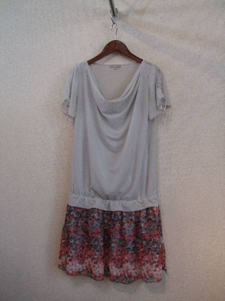- ZAZIEグレー×花柄シフォン半袖ワンピ(USED)12015②)
