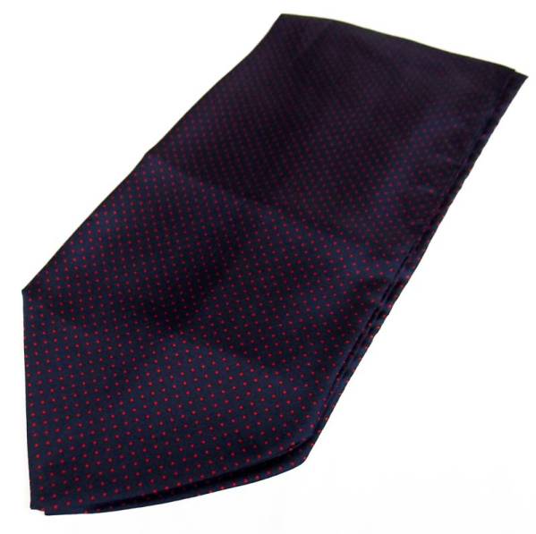 - 日本の巧み/国産シルク100%アスコットタイ紺x赤/水玉ドット小