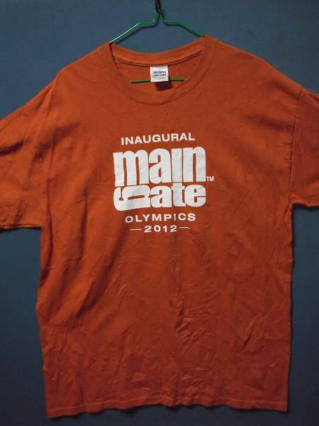 - ③ USA古着 サイズL 前ロゴmain gate OLYMPICS薄茶色半袖Tシャツ