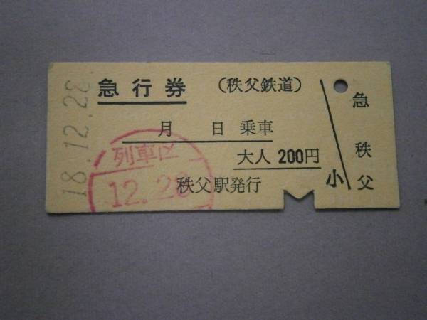- 硬券●●秩父鉄道 急行券18.12.28/3480