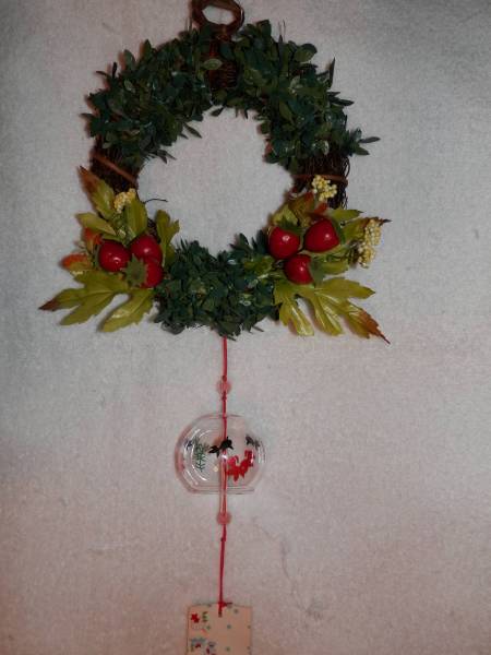 - ハンドメイド 風鈴付きリース(17㎝)①