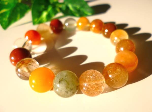 - ☆金運☆成功☆願望成就☆福・禄・寿☆マルチカラーミックスルチルクォーツ☆ ☆大珠12mm☆ ☆16.5~17cm☆