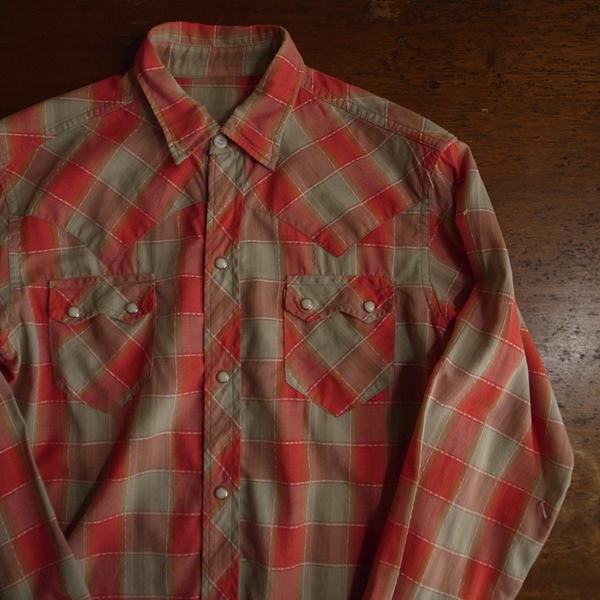 - 60s ヴィンテージ 長袖 ウエスタンシャツ / 暈し チェック オンブレー +