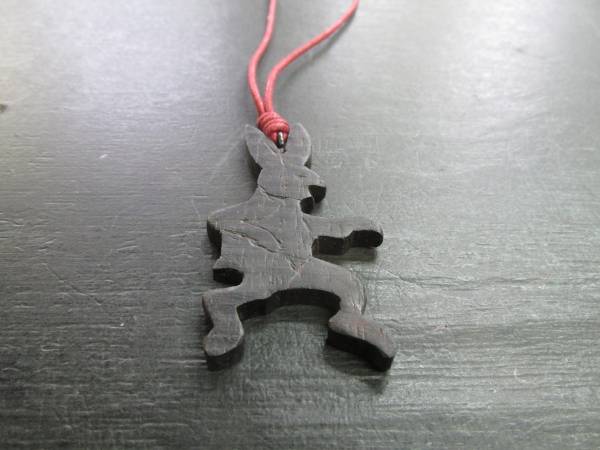 - 紫檀オイルフィニッシュ遅刻うさぎ鳥獣戯画動物彫刻ペンダント