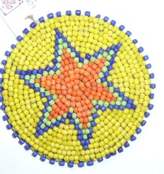 - ビーズ【 コースター 】 オレンジ★黄色×青 アフガンビーズ風 裏黒 ビーズ刺繍 インテリア雑貨 敷物 小物 バンコク ピースストア