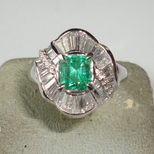 - 送料無料 pt900エメラルド0.94ダイヤ0.97ctリングサイズ14used質屋出品
