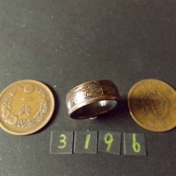 - 18号 コインリング 竜1銭銅貨 ハンドメイド 指輪 送料無料 (3196)