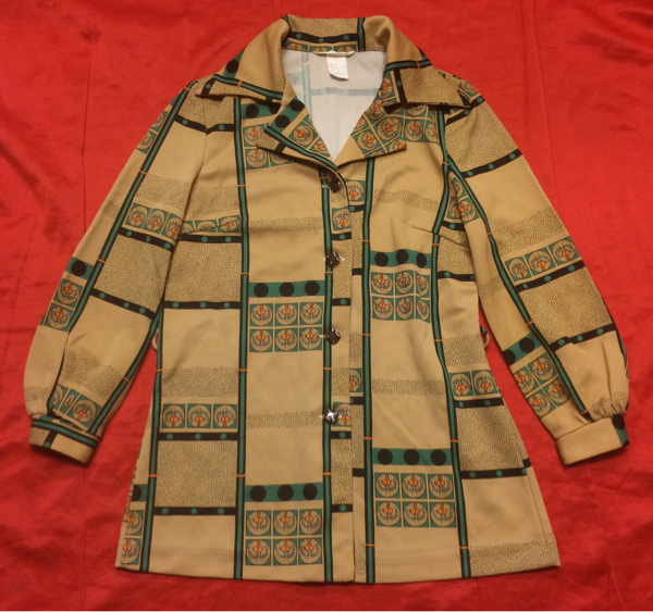 - 昭和レトロ 70-80's モダン柄 シャツ ブラウス ベルトループ付