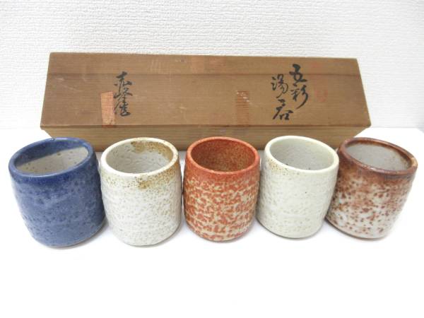 - 未使用品■赤峰作 五彩湯呑 湯のみ 茶器 五客揃 管理1701 R-14