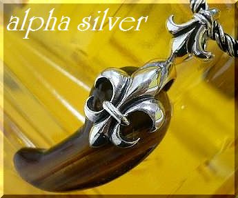 - シルバー925銀の天然石 勾玉タイガーアイ 百合紋リバーシブル ペンダント