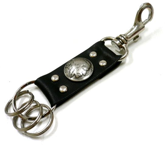 - 牛革インディアン ボタン付き3連レザー キーホルダー/ブラック