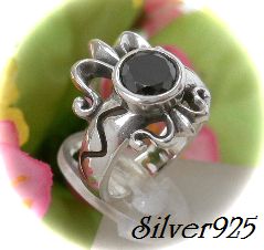 - シルバー925銀の天然石オニキス付 百合の紋章ピンキーリング/5号ラスト1個