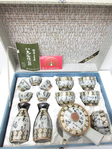 > 美品・激レア■九谷陶山 九谷焼み栞 酒器 お猪口 ぐい呑 徳利 茶器 湯呑 急須 13客セット 訳あり 管理1701 E-5