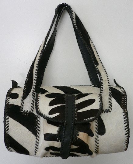 - 牛革×本ハラコ全面 ドラム型ボストンバッグ白毛黒毛/レザー製品ALL20%OFF