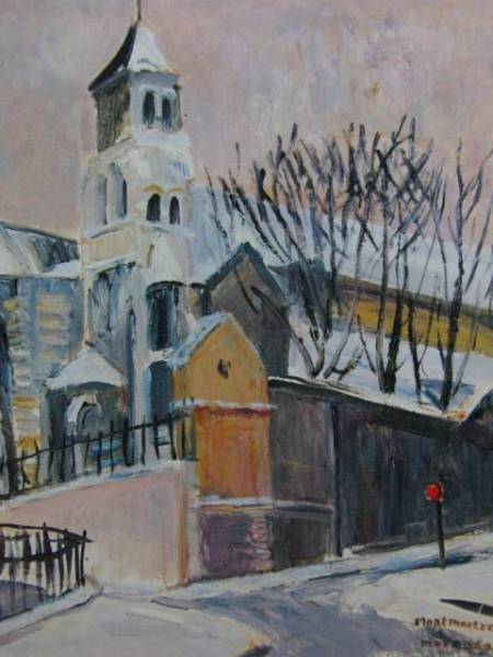 - 村岡 平蔵 、モンマルトルの古き教会、希少な額装用画集より、新品高級額、額装付、状態良好