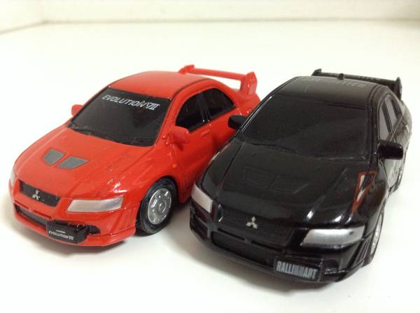 - 2台 三菱 ランサーエボリューション7 Ⅶ 2001年式~ RALLI ART 1/57 約7.8cm チョロQタイプ プルバックカー ミニカー@car. T.T.C.