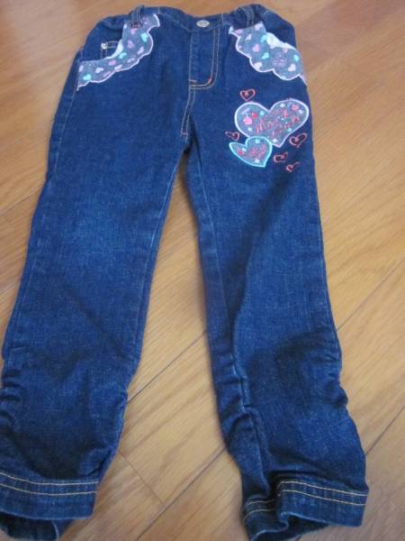 - ミニK MINI-Kのさくらんぼ刺繍ラインストーン付きデニムパンツ☆ハート柄☆サイズ100