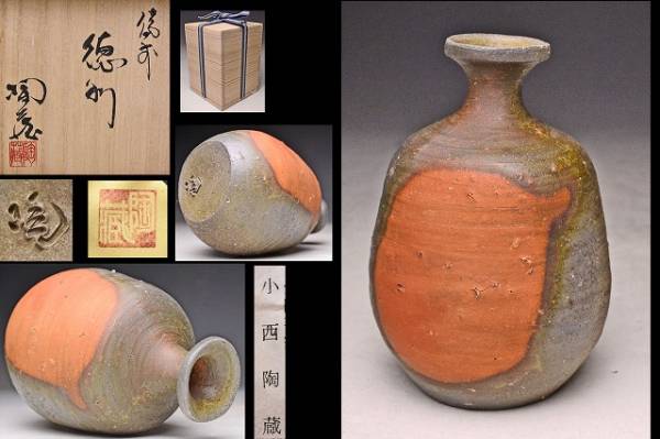 - 小西陶蔵 ★ 備前緋牡丹徳利 ★ 共箱共布栞 ★ 検 小西陶古 ★