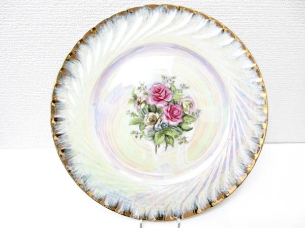 > 極美品・レトロ□SIROYAMA CHINA プレート 大皿 飾り皿 花絵 シェル 金彩 27cm 管理1705 D-4