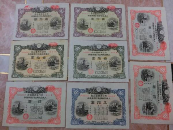 - ★ 大日本帝国政府 大東亜戦争割引国庫債券 拾圓・貳拾圓・参拾圓・五拾圓 4種8枚セット ★ No.10