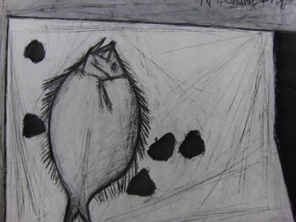 - ベルナール・ビュッフェ、魚の静物、希少な画集より、新品高級額装付、送料無料