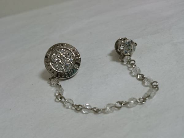- 正規良 入手困難 COMME CA ISM コムサイズム オーバルロゴ文字ブローチ シルバー×石 フリンジチェーン×ライトストーン 男女兼用可〇 希少