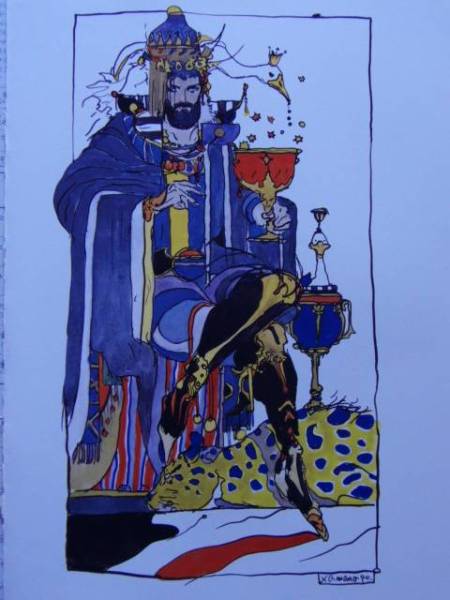 > 天野 喜孝、KEEP KNOWLEGE、card name: KING of CUPS、タロットカード図版、希少な画集より、新品額装付、状態良好、mai