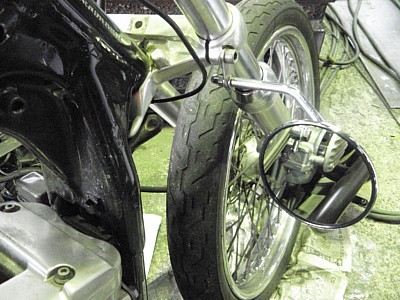 - XS650用ステンレス製フォーククランプミラーKIT / 丸型ミラー 3インチ ステーはステンレス製ですので錆びません。日本製です。