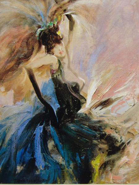 - 鶴岡義雄、リドの踊り子、希少限定大判画集画、新品高級額装付、mai