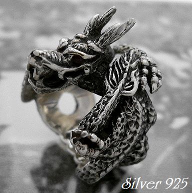 - シルバー925純銀ドラゴン龍リング/ガーネット眼/15号.17号.21号より