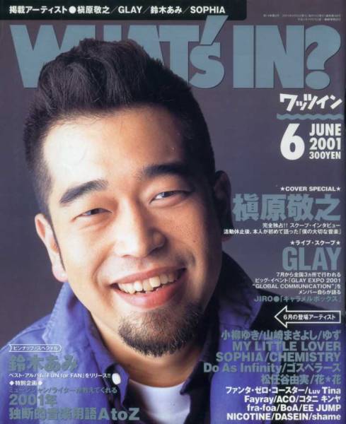 > WHAT's IN? 2001/6 槇原敬之 GLAY 鈴木あみ SOPHIA Do As Infinity 山崎まさよし CHEMISTRY BoA ZONE キタキマユ 小松未歩 藤井フミヤ aiko