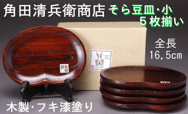 > 角田清兵衛商店 そら豆皿 5枚揃い 木製 吹き漆塗り 16.5cm×11.5cm 新中古 KA-6542
