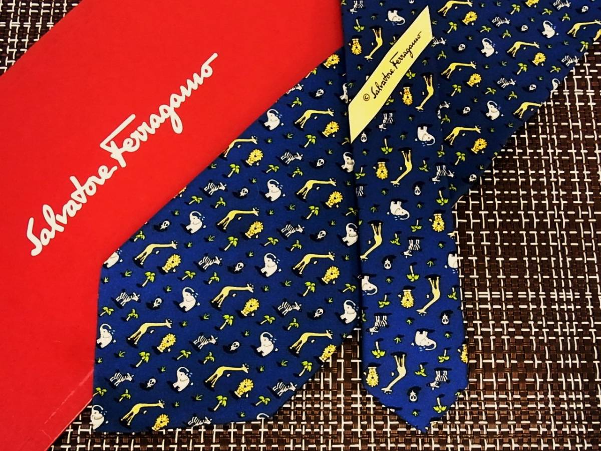 - ・ω・ ★SALE★2119★フェラガモ~パンダ・ライオン・ゾウ・キリン~ネクタイ