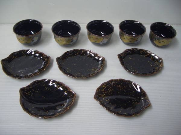 - ★湯飲み★金彩花扇/茶菓★5客揃い★竹斎?H