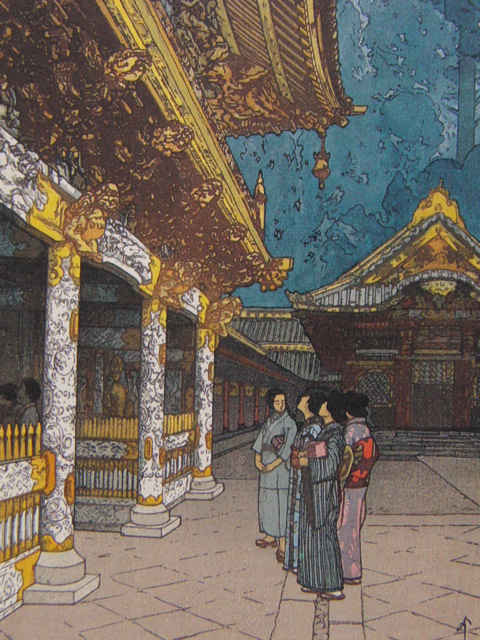 - 吉田博、【金と白】、希少画集画、高級新品額・額装付、状態美麗、送料無料