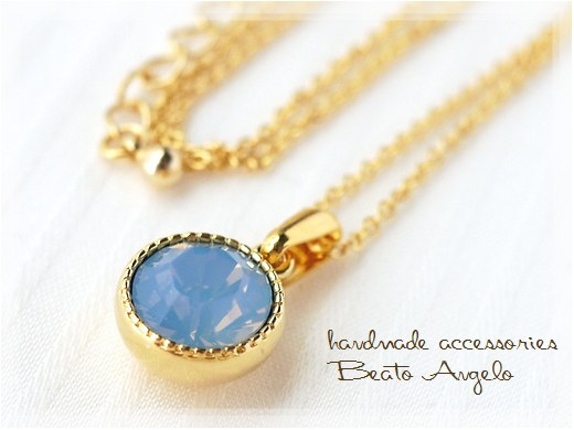 > ◇◇+angelo+スワロフスキー 1088のネックレス(n-021)エアーブルーオパール G 一粒 シンプル ライトブルー ※在庫限り