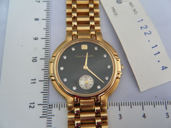 - 新品 ギ・ラロッシュ 紳士用クォーツ 122114 金色・黒文字盤 スモールセコンド ボーイズサイズ