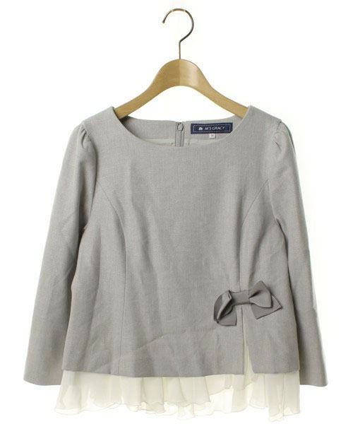 - エムズグレイシー 裾シフォン リボン 長袖 ブラウス 38