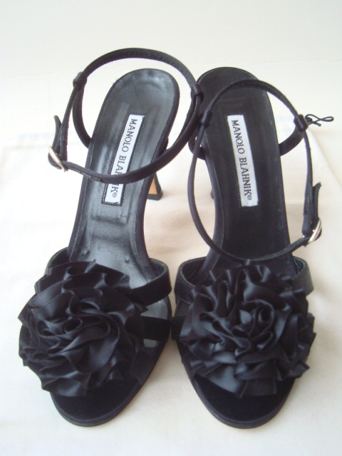 - MANOLO BLAHNIK ブラックサテンサンダル size351/2 マノロブラニク