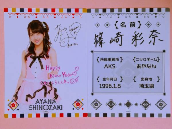 > AKB48 福袋2016 プロフィールカード 篠崎彩奈 2枚セット